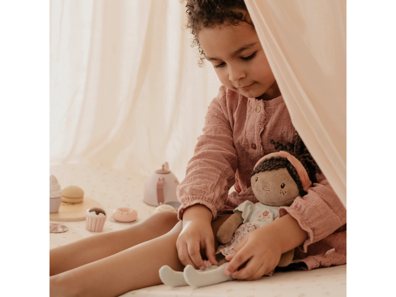 Něžná plyšová panenka Evi z měkkého jemného materiálu je oblečená do krásných květovaných šatiček. Je vhodná na hraní i mazlení a bude se s ní i krásně usínat!
