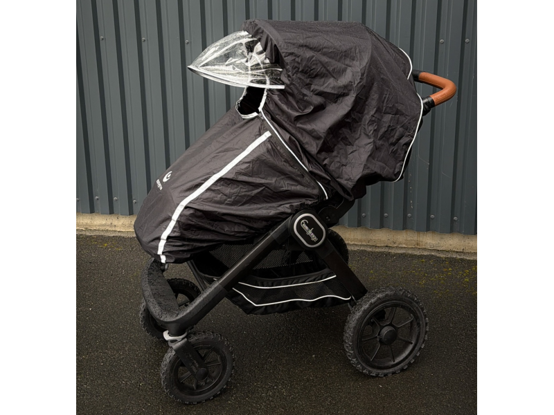 Univerzální pláštěnka na kočárek je praktická ochrana proti dešti a větru, vhodná na většinu typů kočárků. Průhledná přední clona chrání dítě a zároveň nechává dovnitř kočárku proudit světlo a umožňuje výhled z kočárku. Velký přední otvor zajišťuje příjemné proudění vzduchu. Pláštěnka má boční zip, díky kterému ji snadno otevřete a rychle sundáte i mokrou, a to s minimálním hlukem. Pro bezpečnější pohyb za šera je doplněná reflexními prvky. Po použití ji snadno složíte do integrované kapsy.