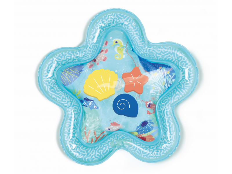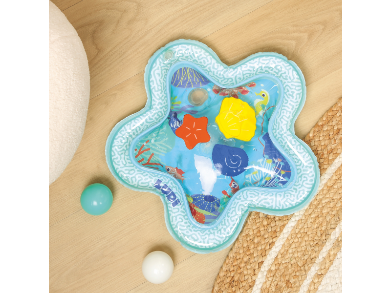 Interaktivní podložka na hraní naplněná vodou připomíná skutečný podmořský svět s vodními živočichy. Figurky mořských tvorů se uvnitř ve vodě začnou pohybovat, kdykoli dítě na podložku sáhne rukou.