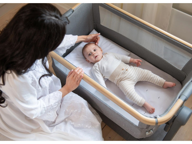 Postýlka KikkaBoo Nanna je praktická a stylová přístavná postýlka k rodičovské posteli, která vám umožní mít miminko bezpečně u sebe a dopřát si tak klidnější spánek. Díky spouštěcí přední straně máte dítě vždy snadno na dosah pro kojení, uklidnění i kontrolu bez nutnosti vstávat. Součástí je bezpečnostní popruh pro pevné připevnění k rodičovské posteli, takže postýlka drží stabilně na místě. Moderní konstrukce v kombinaci lehkého hliníku s povrchovou úpravou v dekoru dřeva skvěle zapadne do každé ložnice a potěší i při cestování.