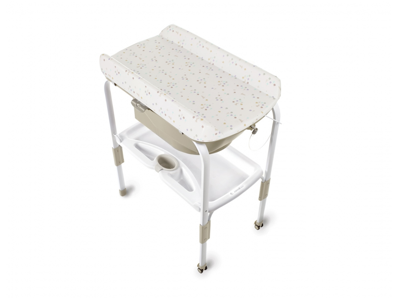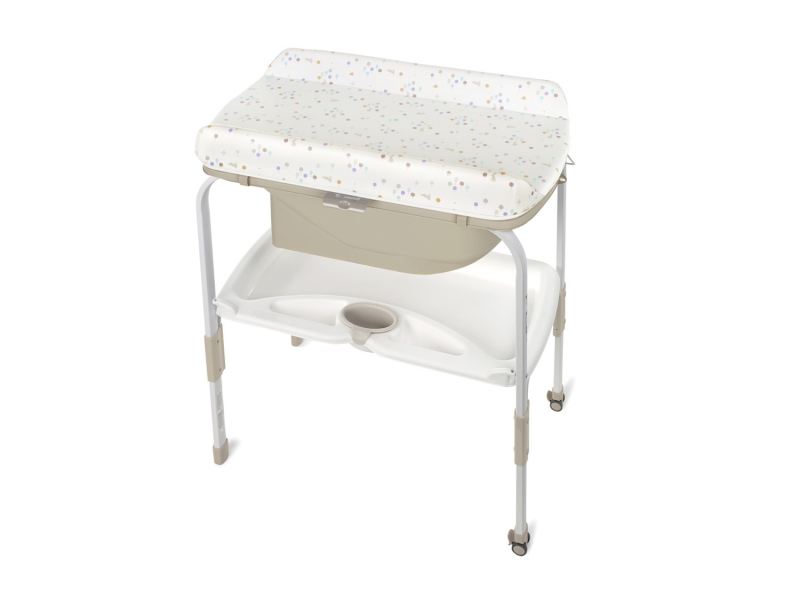Měkká pěnová přebalovací podložka zajistí komfort při přebalování. Vanička má protiskluzový a ergonomický vnitřek se dvěma podpůrnými polohami podle věku dítěte (0–6 měsíců a 6–12 měsíců). Praktická je možnost umístění vaničky na levou nebo pravou stranu (vhodné pro praváky i leváky).