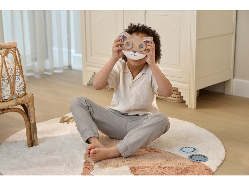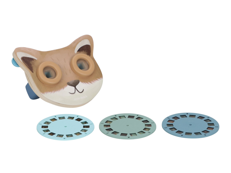 Prohlížeč příběhů Little Dutch je kouzelná hračka, která děti vtáhne do světa vyprávění a fantazie. Má podobu roztomilé lišky a funguje jednoduše: stačí otáčet kotoučky a před očima se odvíjejí obrázkové příběhy z lesa. Součástí jsou tři výměnné kotouče s příběhy kamarádů z lesa. Ideální pro klidné chvíle před spaním i společné vyprávění s rodiči. Hračka podporuje rozvoj řeči, představivost a schopnost tvořit vlastní příběhy.