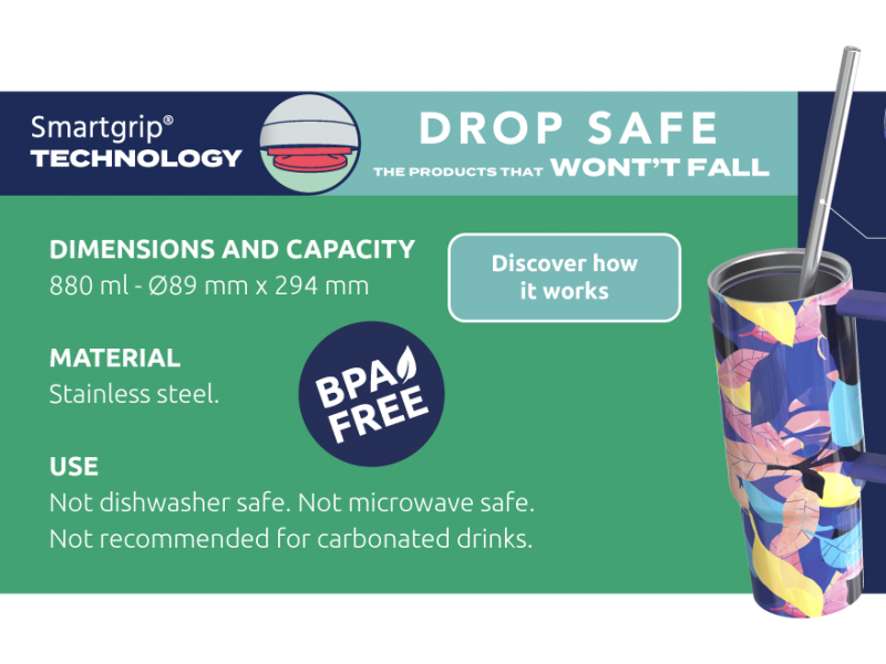 Quokka Vibe je součástí kolekce hrnků Drop Safe se speciálním dnem Smartgrip®, které při postavení na hladký povrch brání převržení a nechtěnému vylití obsahu hrnku.