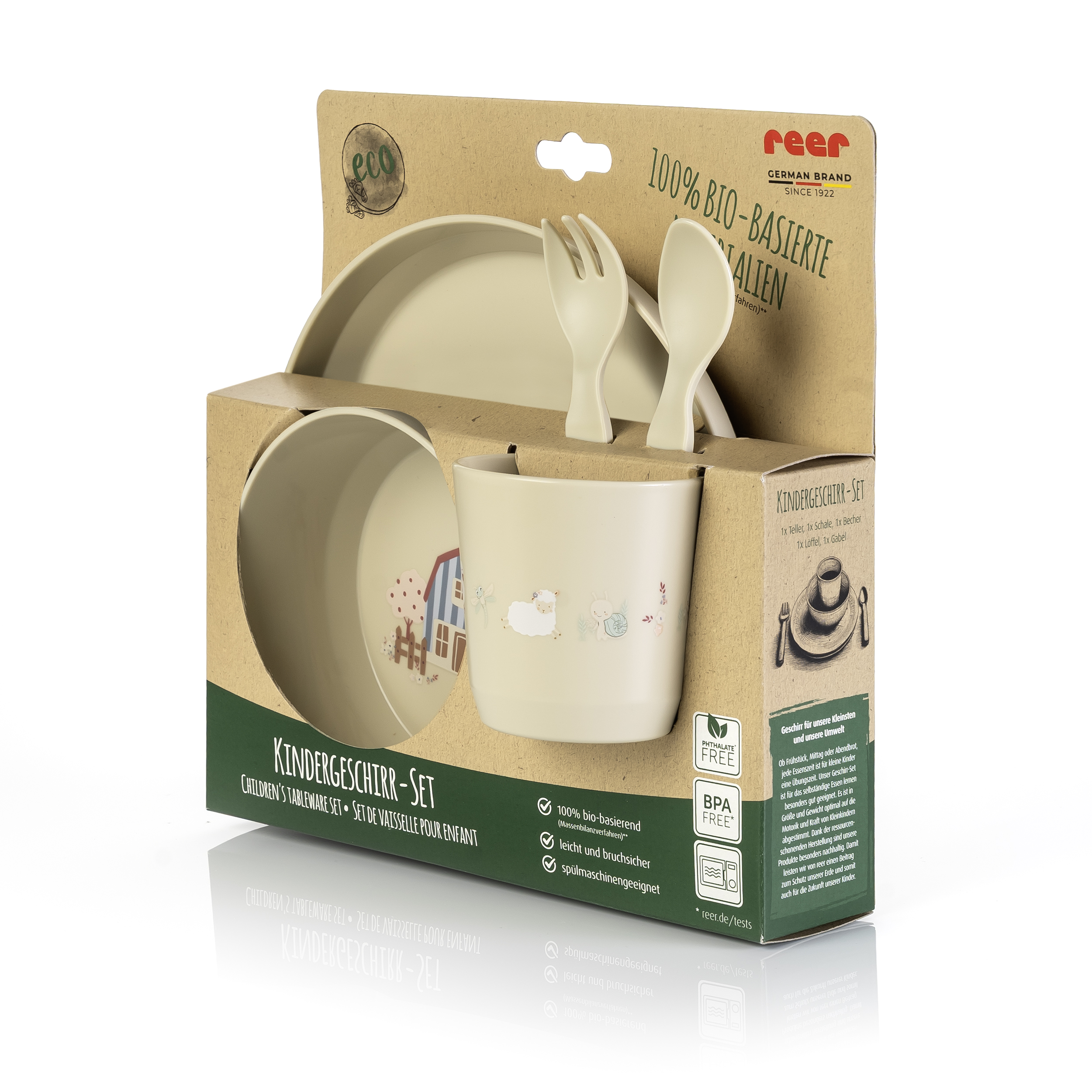 Dětská jídelní sada reer byla vyvinuta speciálně s ohledem na potřeby malých dětí. Je lehká, ergonomická a bezpečná. S pečlivě navrženým talířem, miskou, hrníčkem, vidličkou a lžičkou je ideální pro nácvik samostatného stravování a zároveň přináší radost z jídla.