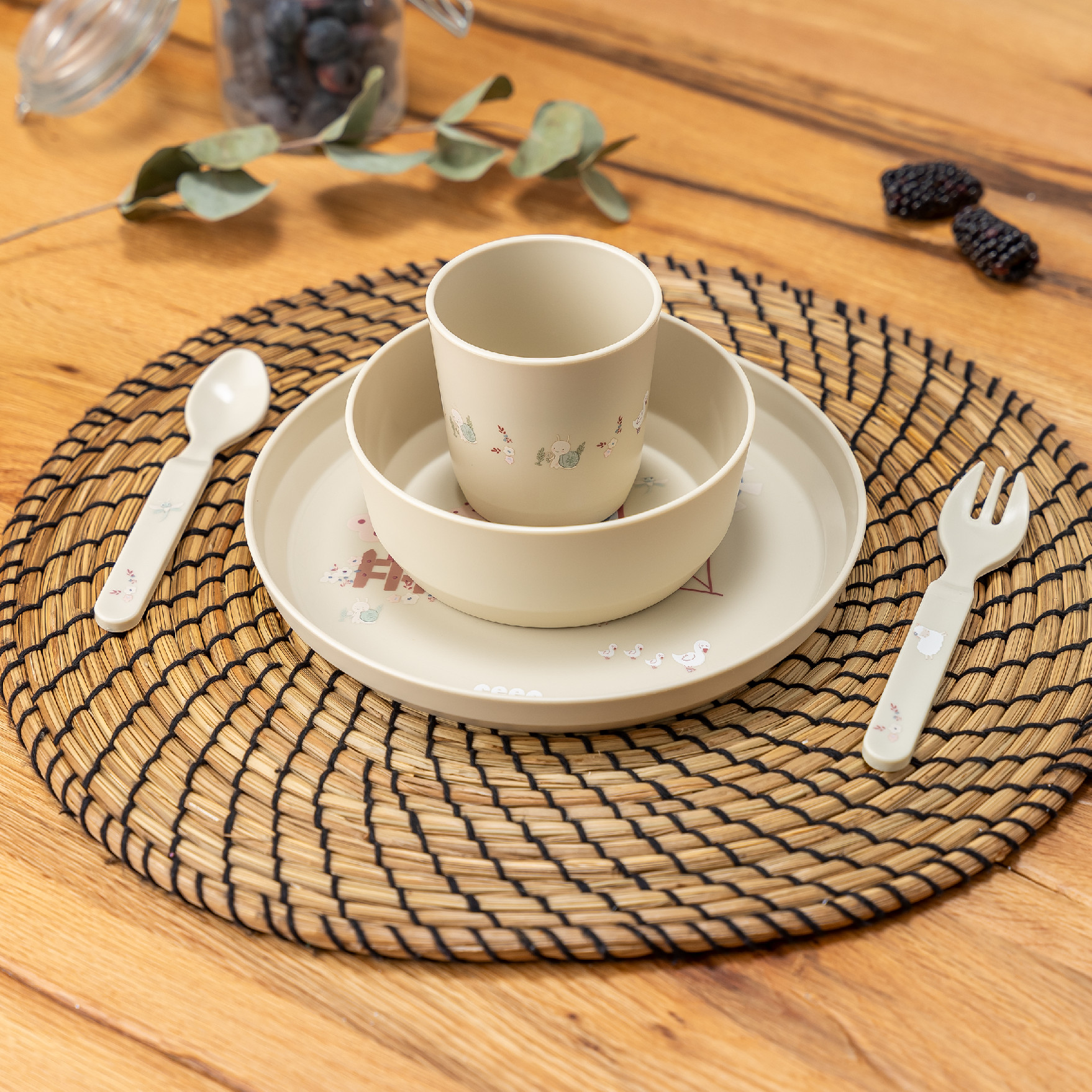 Díky praktickému provedení je sada vhodná do každodenního používání. Lze ji mýt v myčce a ohřívat v mikrovlnné troubě do 600 W. Dětský design ve variantách Little Explorer (zelená) nebo Little Farm (béžová) promění každé jídlo v malé dobrodružství.