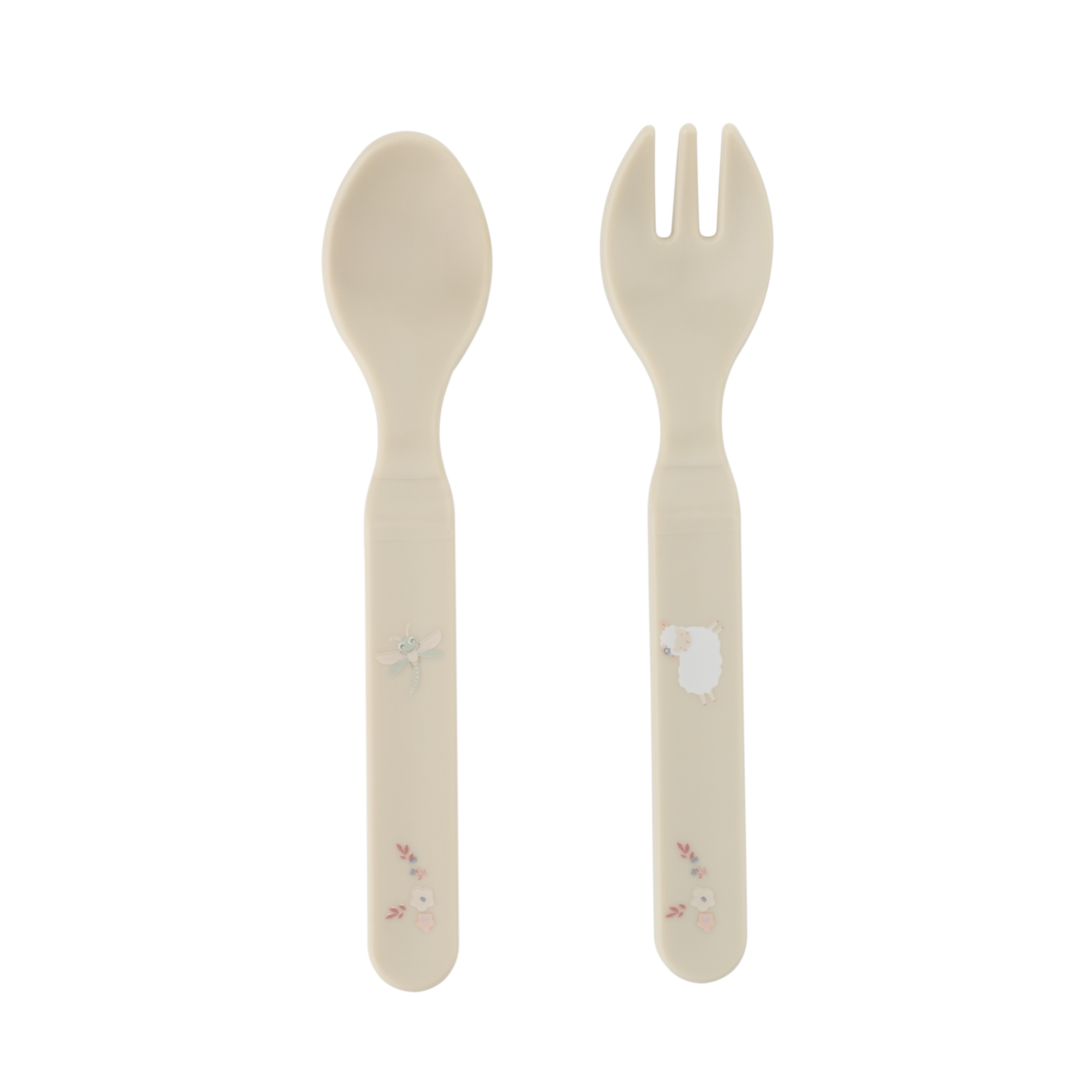 Zaoblené hrany, měkké hroty vidličky a jemné tvary chrání dítě před poraněním při samostatném jídle.