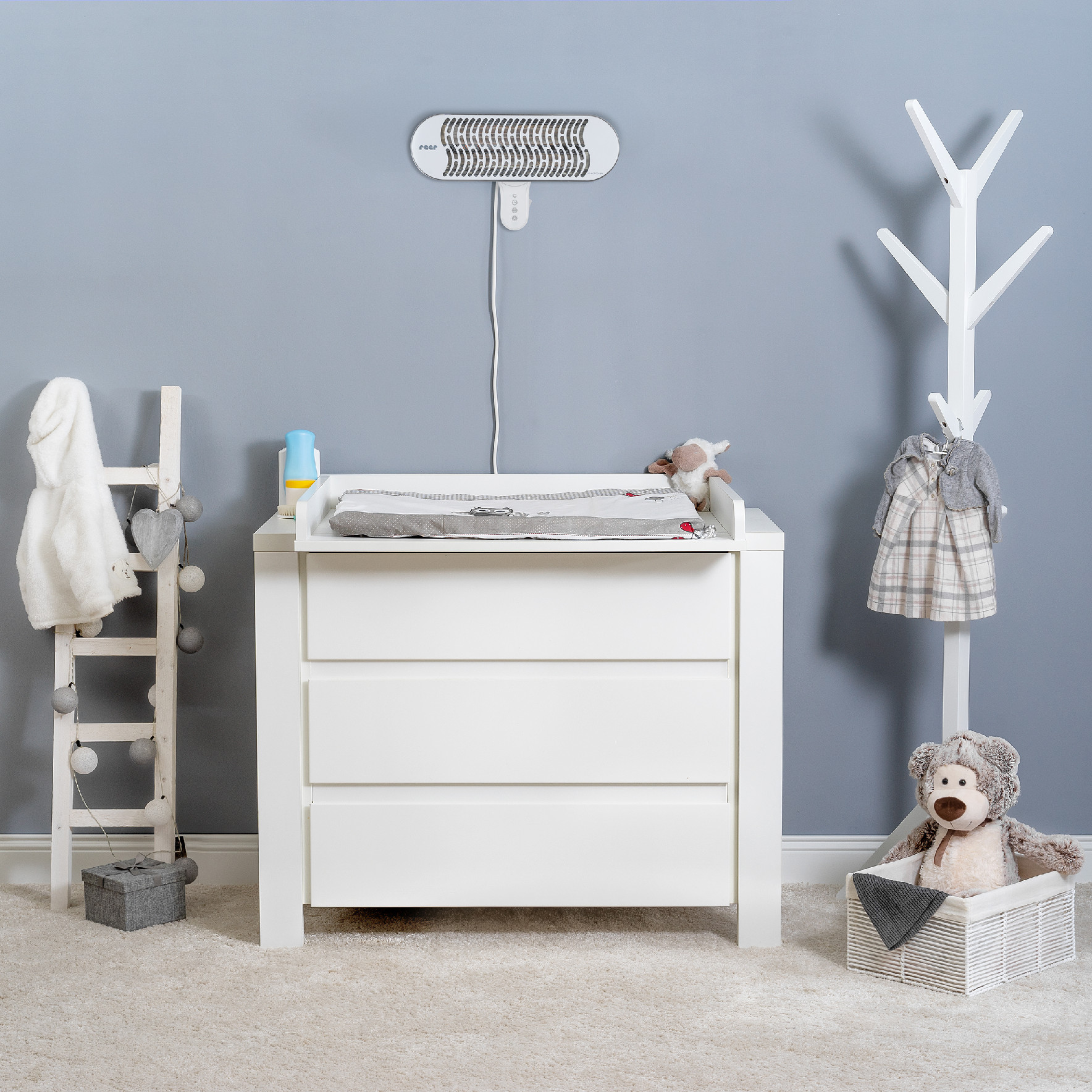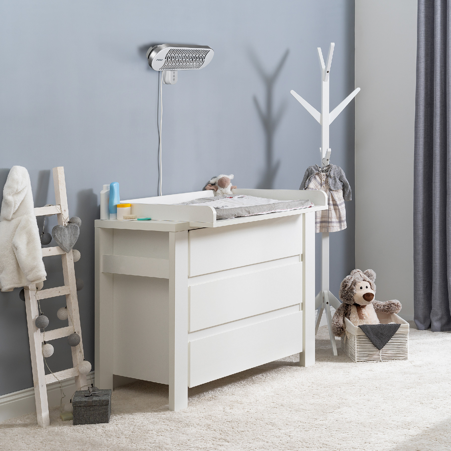 Miminka si ještě nedokážou samostatně regulovat tělesnou teplotu. Zejména po koupání nebo při přebalování proto velmi rychle prochladnou. I malé rozdíly v teplotě mohou způsobit, že miminko začne mrznout nebo se nachladí. O to důležitější je zajistit stálou, příjemnou teplotu. Ohřívač přebalovacího pultu HeatCare+ poskytne Vašemu miminku okamžitě příjemné teplo. Díky tomu je spolehlivě chráněno před prochladnutím a může si čas přebalování užívat v pohodlí a pocitu bezpečí.