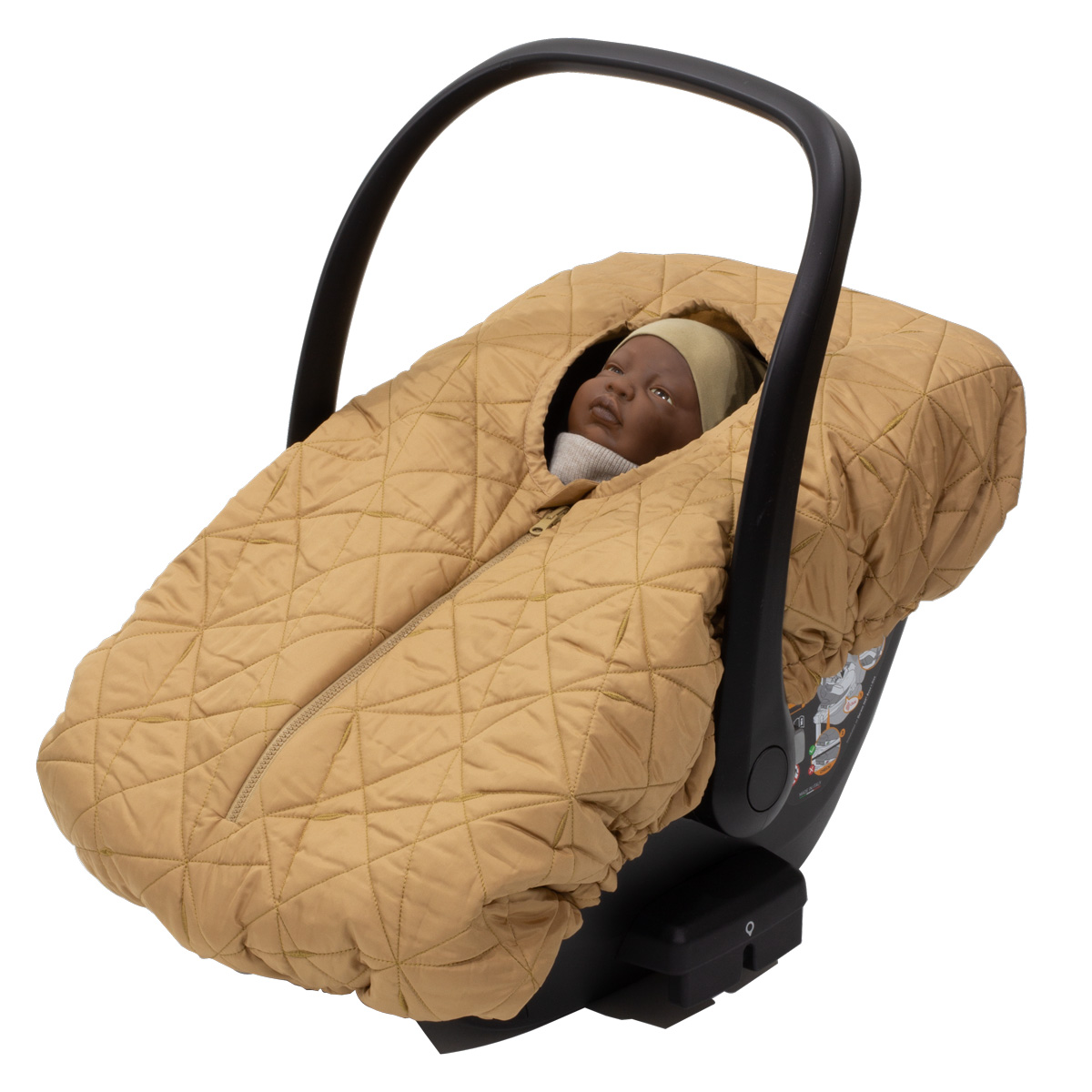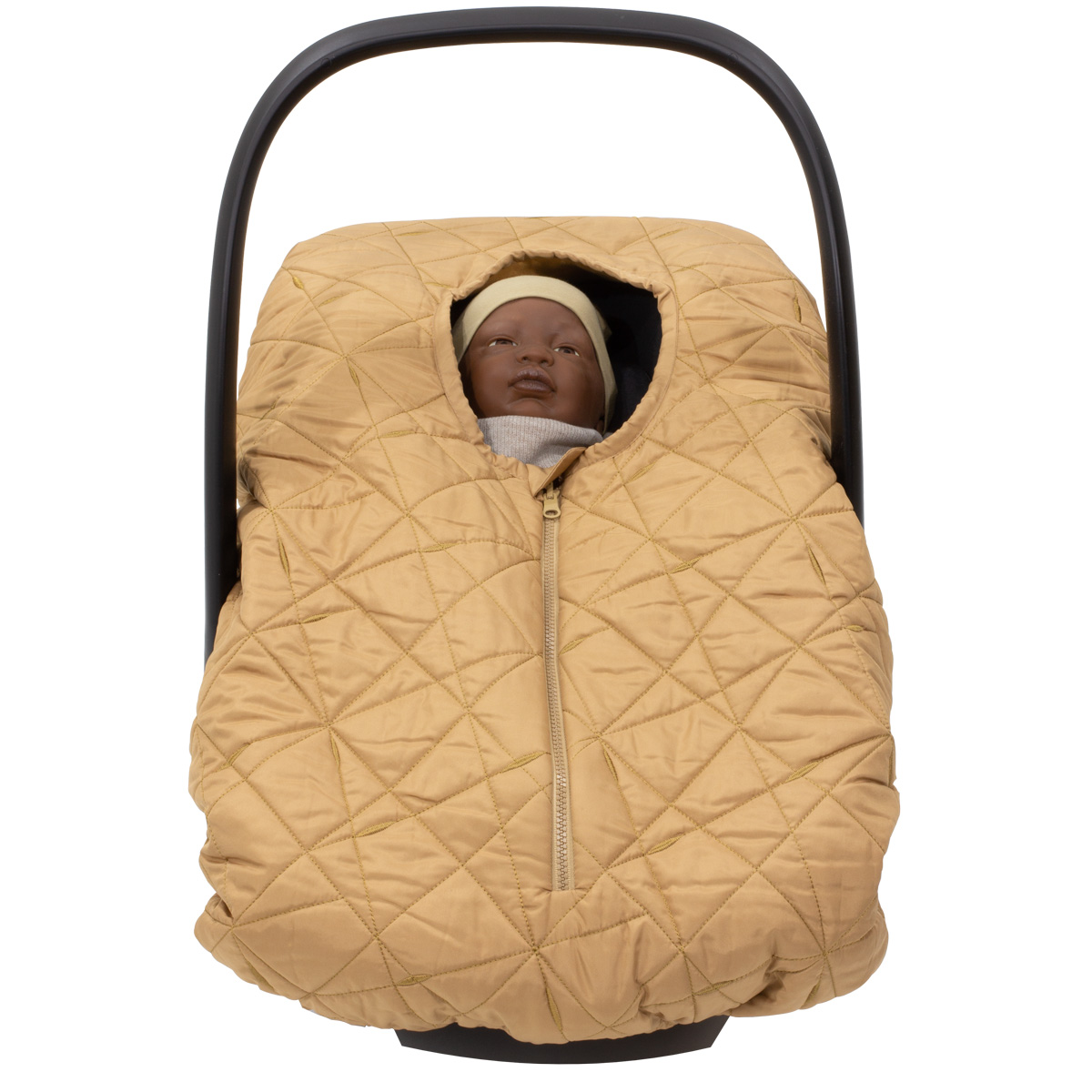 Používáte přenašečku na podvozku kočárku i v zimě? Pak by se Vám mohl hodit univerzální prošívaný kryt na autosedačku, který pasuje téměř na každé vajíčko. Chrání novorozence a malé děti před větrem, deštěm nebo sněhem. Vnější potah krytu je z odolné, vodoodpudivé a otíratelné polyesterové látky. Uvnitř zajišťuje příjemné klima teplá bavlněné podšívka. Kolem dokola je kryt opatřen gumou, takže se přizpůsobí každé sedačce. Kryt je uprostřed rozeviratelný na zip. Horní konec zipu je schovaný pod látkou, aby se tak ochránila bradička dítěte proti otlačení. Snadná manipulace a údržba.