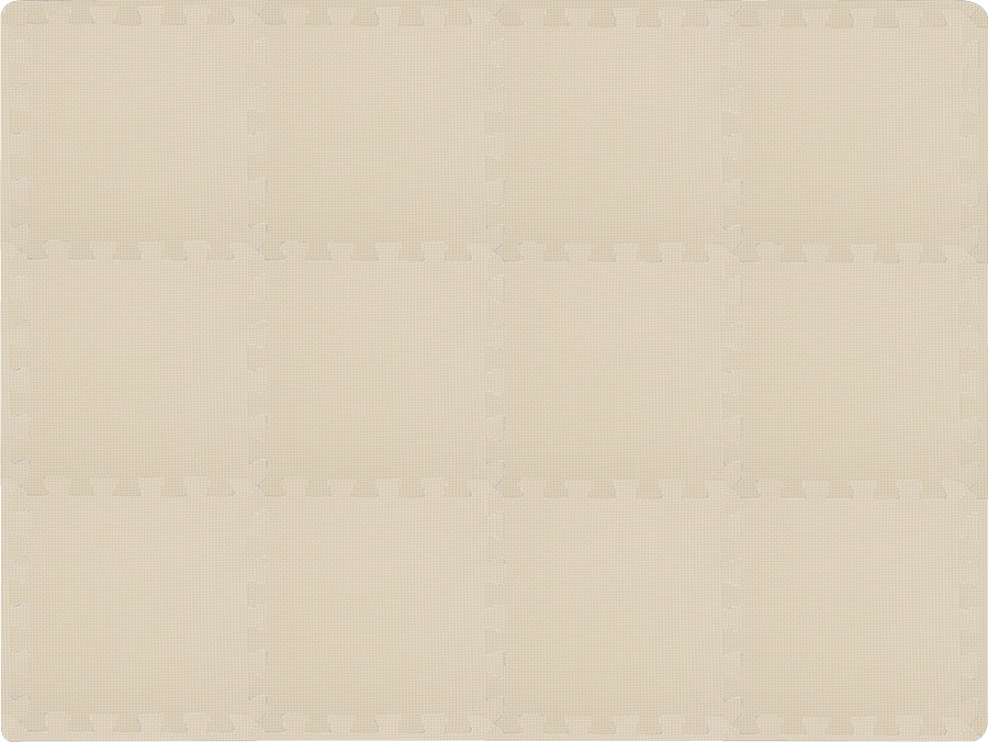 Vynikající zesílená pěnová puzzle tvořící hrací podlahu ve světle béžové barvě s rovnými okraji. Složte si svůj vlastní, originální hrací koberec tak, aby ozdobil váš dětský pokojíček. Balení obsahuje celkem 12 kusů puzzlí, každá 31,5×31,5 cm a 14 okrajů. Pěnová podlaha je vyrobena z extra husté pěny tloušťky 1,4 cm, takže si na ní děti mohou hrát a bezpečně spadnout. Hrací podložka z puzzlí chrání plazící nebo batolící se dítě před chladem, hlukem a nárazem. Velmi vhodné přes dlažbu nebo plovoucí podlahu. Podložka může být alternativně sestavena také do čtvercové krabice. Pokud máte více podložek, můžete vytvořit další krabice, které dítěti mohou skládat. Spousta možností pro aktivní hru. Mnoho způsobů využití, např. podlaha do stanu při kempování, podlaha do auta, pokud v něm budete chtít přespat.Plně kompatibilní s pěnovými puzzlemi BabyDan.