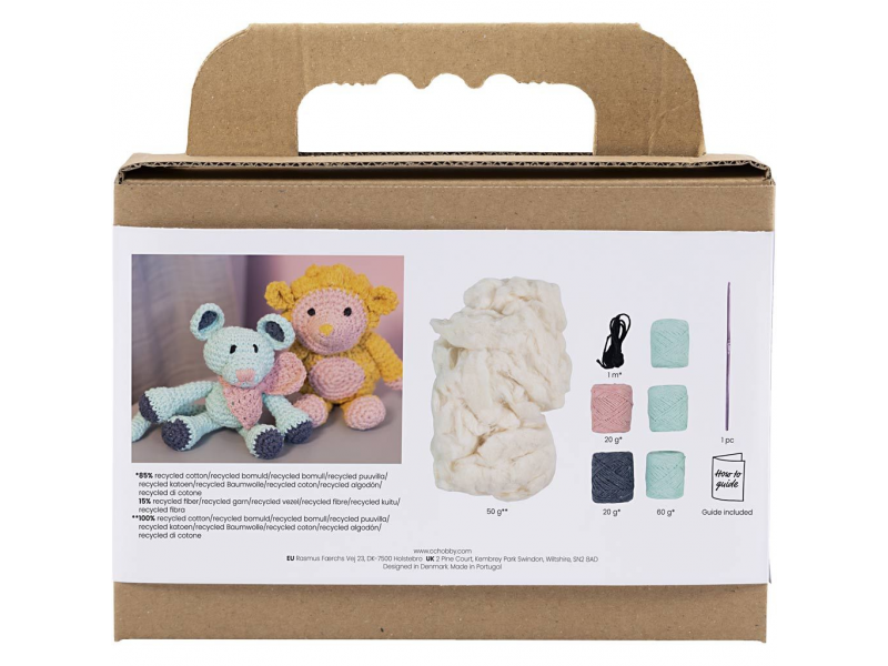 Obsah balení: příze, výplň, háčkovací návod, háček (jehla není součástí balení)