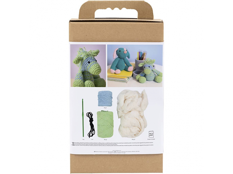 Obsah balení: příze, výplň, háčkovací návod, háček (jehla není součástí balení)