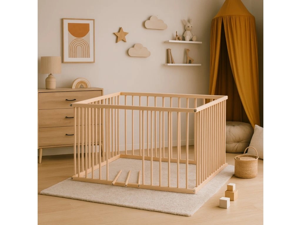 Dětská dřevěná ohrádka Scarlett BELA – přírodní, 100×100 cm je