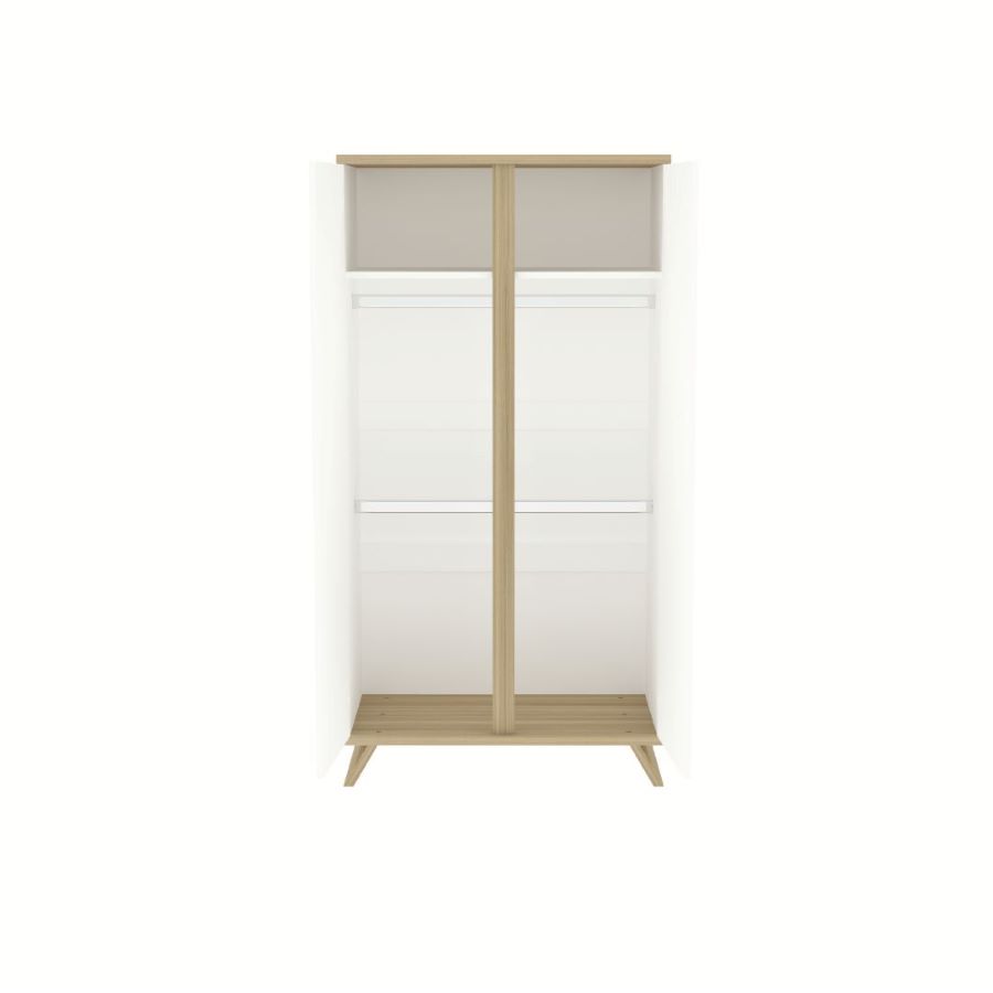 Dvoudílná šatní skříň do dětského pokoje Sienna White zajistí dostatek úložného místa. Praktická vnitřní výbava tvořená dvěma šatníma tyčemi a poličkami přispívá k přehlednému a snadnému ukládání věcí vašeho dítěte.