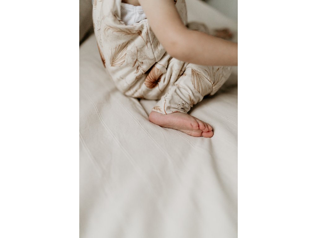 Nohavice mají zakončení stejné, jako u některých dětských bodyček a overalů – okraji nohavic tak můžete jednoduše překrýt nožky dítěte a zajistit jim ještě větší teplo. Nohavičky můžete překrýt až v průběhu spánku podle toho, zda je dítěti teplo nebo zima.