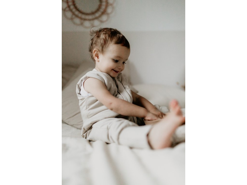 Spací pytel je ručně šitý z měkoučké bavlny s 8% přídavkem elastanu. Díky tomu je pružný a poskytuje dětem skutečně plnou svobodu pohybu. Větší děti v pytli mohou také pohodlně sedět a užít si třeba četbu oblíbené pohádky před spaním.