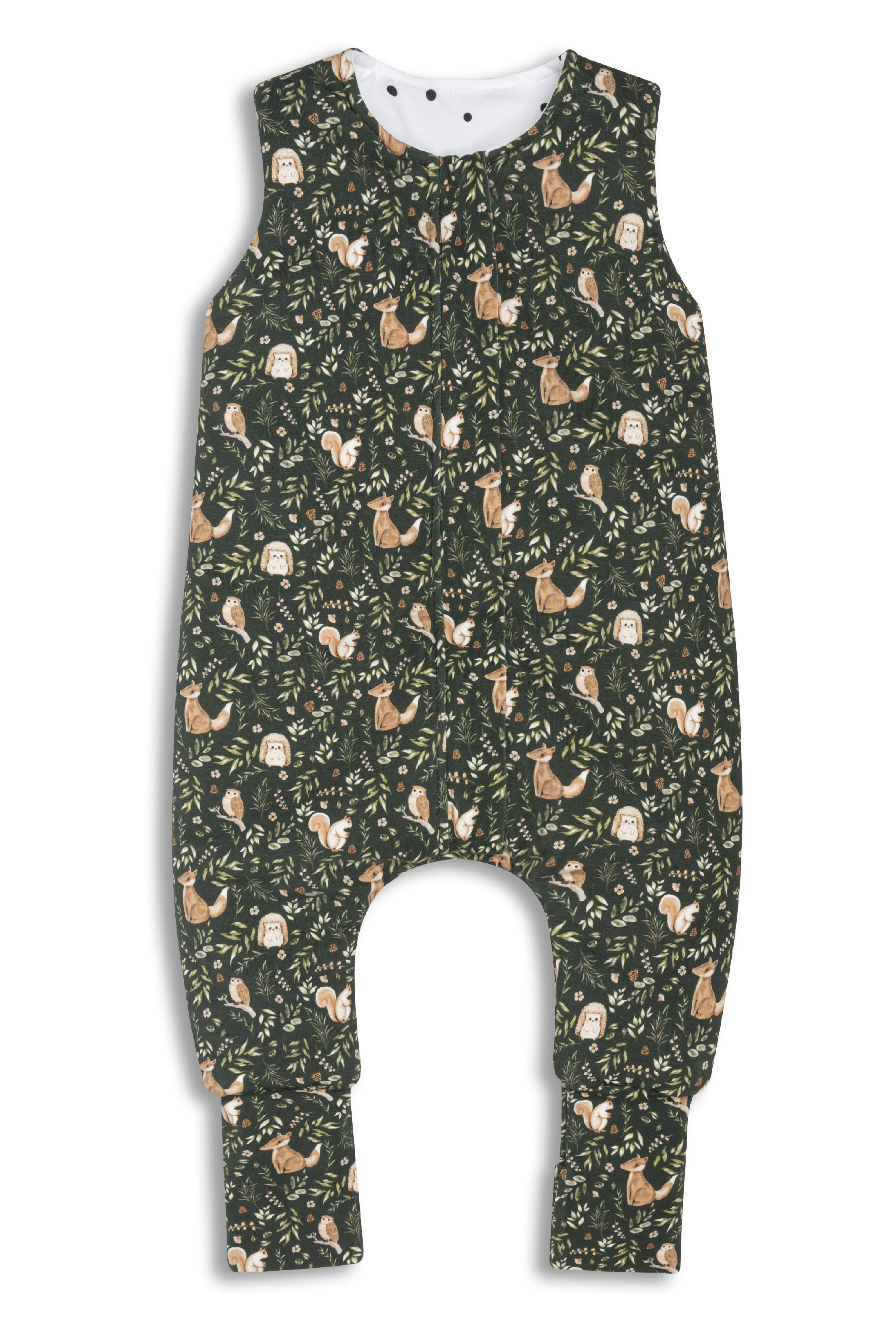 Oboustranný spací pytel s nohavicemi Sleepee Green Forest (vel. XS) je inovativní a perfektní produkt pro spaní miminek. Poskytuje dokonalé pohodlí, teplo a absolutní svobodu pohybu po celou dobu spánku i při večerních rituálech.