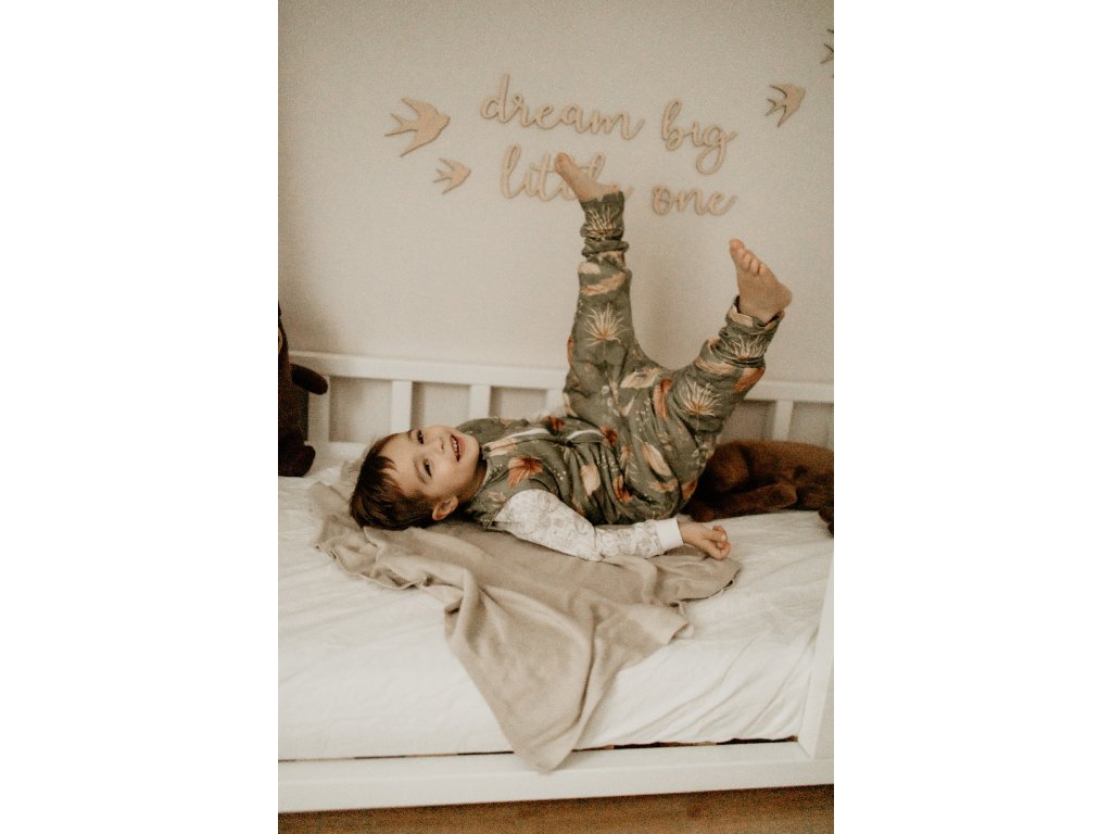 Spací pytel je ručně šitý z měkoučké bavlny s 8% přídavkem elastanu. Díky tomu je pružný a poskytuje dětem skutečně plnou svobodu pohybu. Větší děti v pytli mohou také pohodlně sedět a užít si třeba četbu oblíbené pohádky před spaním.