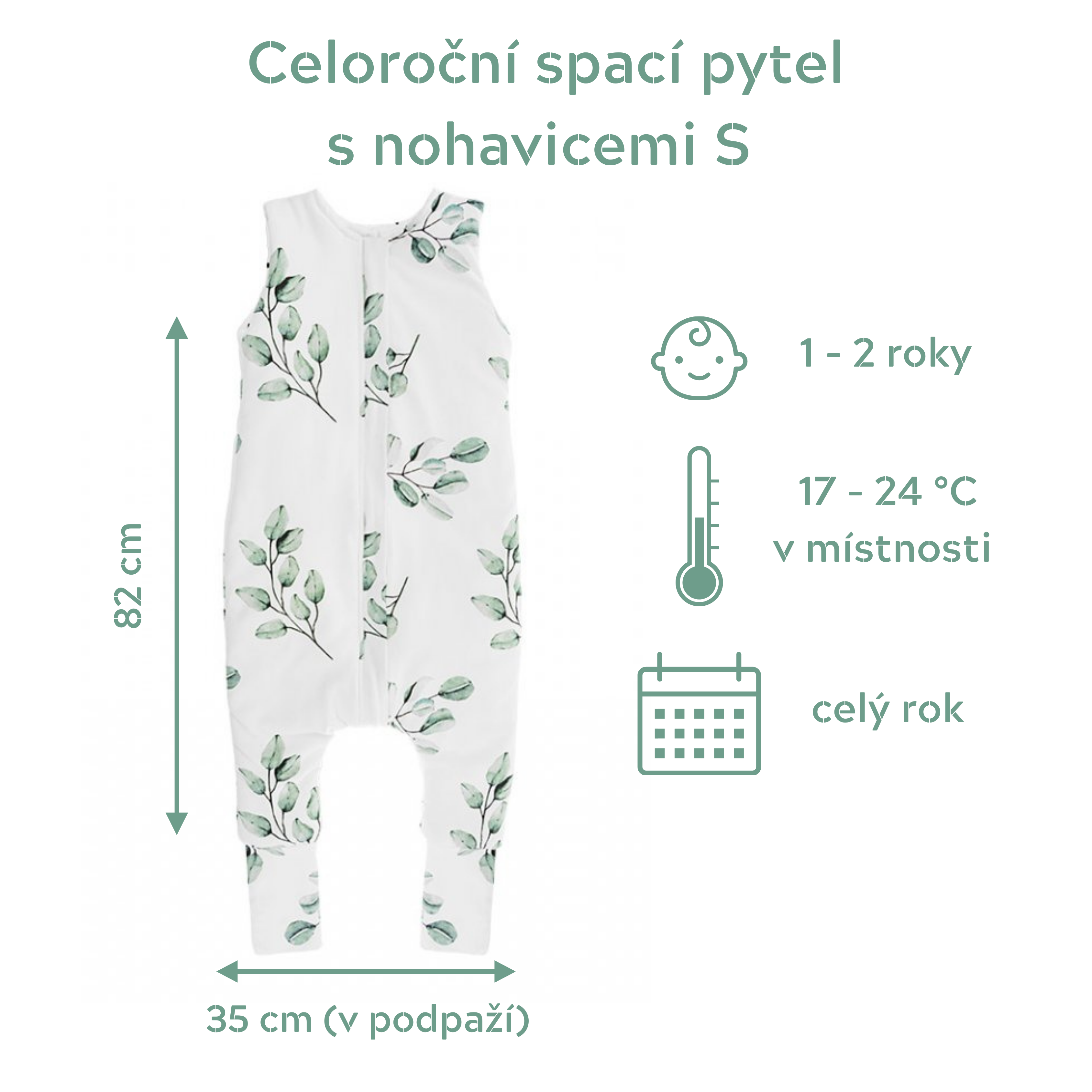 Spací pytel s nohavicemi Sleepee Ivory Forest (vel. S) je perfektní volba pro batolata. Zajistí úplnou svobodu pohybu při spánku, ale zároveň se dítko v noci neodkope. Nohavice mají krytky, které lze přetáhnout přes chodidla dítěte pro ještě větší teplo. Bavlněný materiál je prodyšný a díky 8% elastanu také příjemně pružný a pohodlný. K dispozici ve třech velikostech: 6–12 měsíců, 1–2 roky a 3–4 roky.