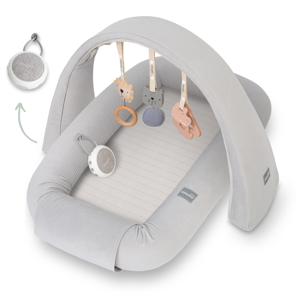 Multifunkční bezpečné hnízdečko pro miminko s hrazdičkou a bílým šumem Sleepee – jeden produkt, nekonečné možnosti!