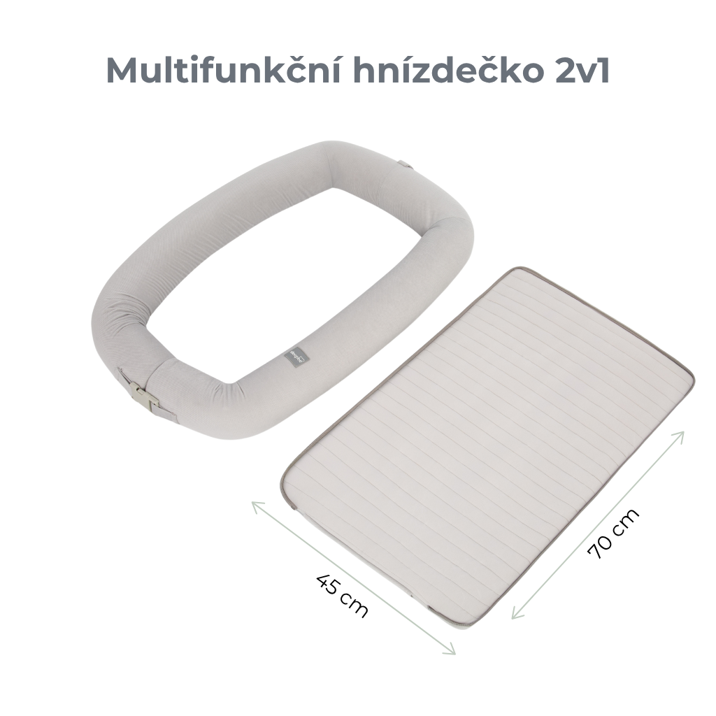 Inovativní řešení 3v1 kombinuje bezpečnost, pohodlí a klidný spánek v jedné sadě. Hnízdečko roste s vaším miminkem a přizpůsobuje se vašemu dennímu režimu – od spánku přes hraní, až po klidné chvíle odpočinku.