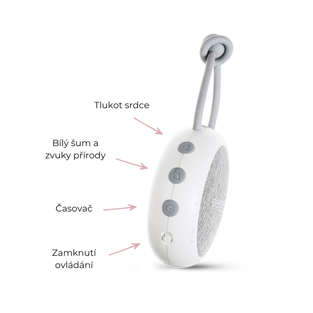 Zvukový modul s bílým šumem, tlukotem srdce a zvuky deště a přírody pomohou vašemu miminku uklidnit se a snáze usínat. Každé miminko je jiné a má jiné potřeby. Proto jsme ve zvukovém modulu připravili několik různých zvuků a vy tak můžete vybrat takový, který bude vyhovovat právě vašemu miminku.