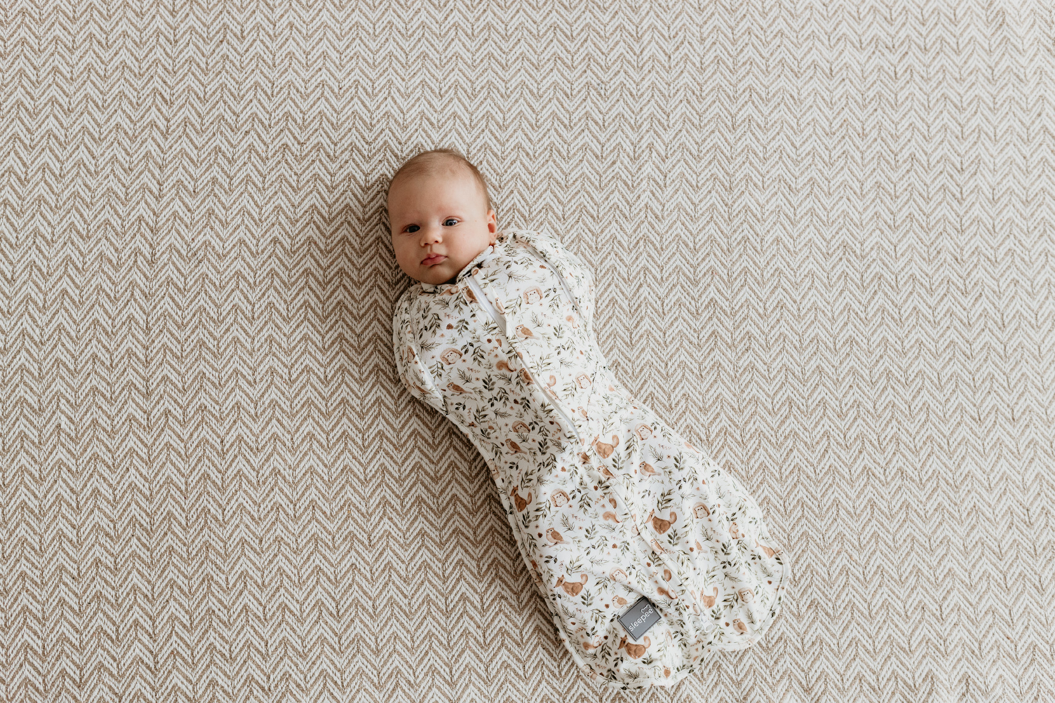 Zavinovačka First Step Swaddle Ivory Forest je velkým pomocníkem při
