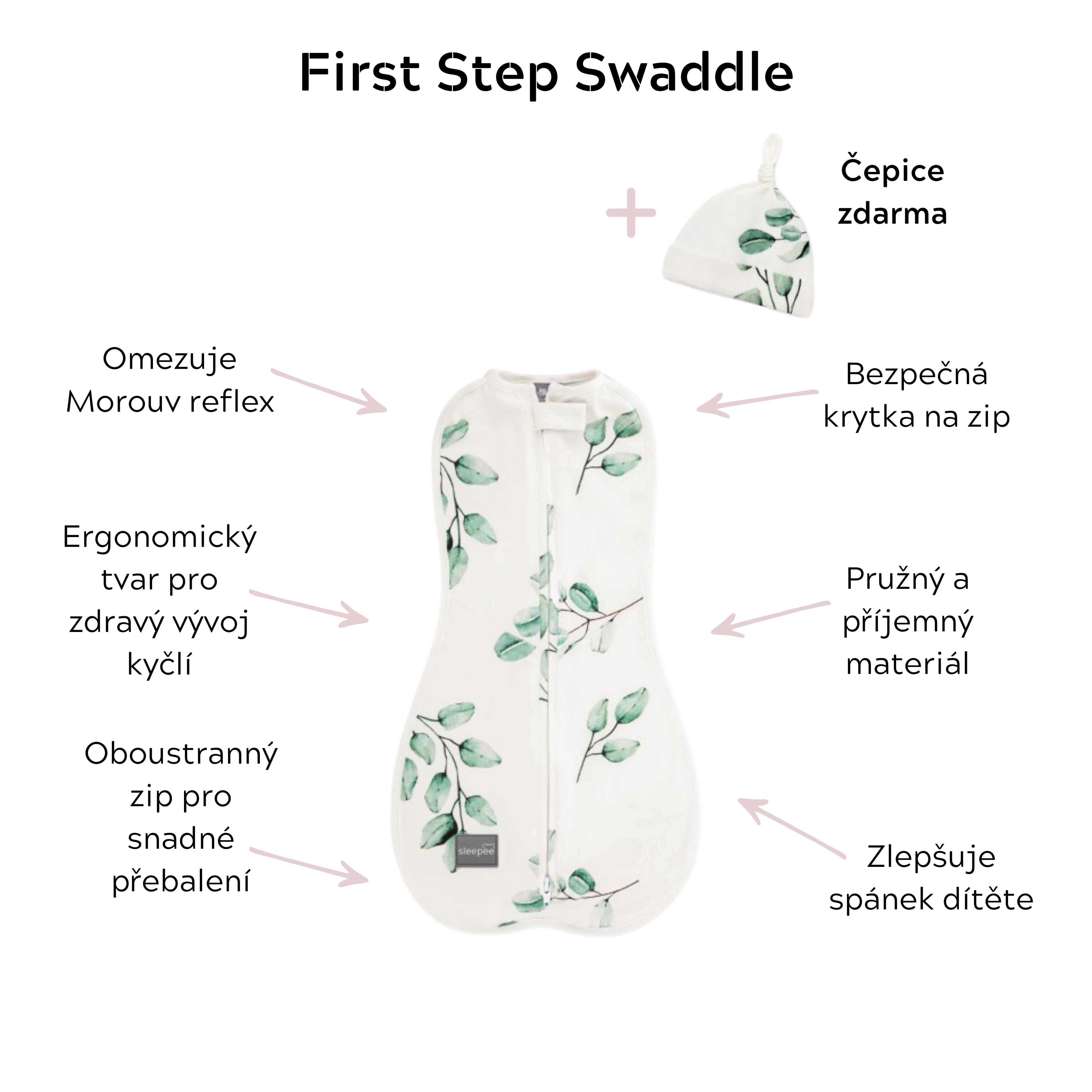 Zavinovačka First Step Swaddle je určena pro děti od 3 do 6,5 kg.