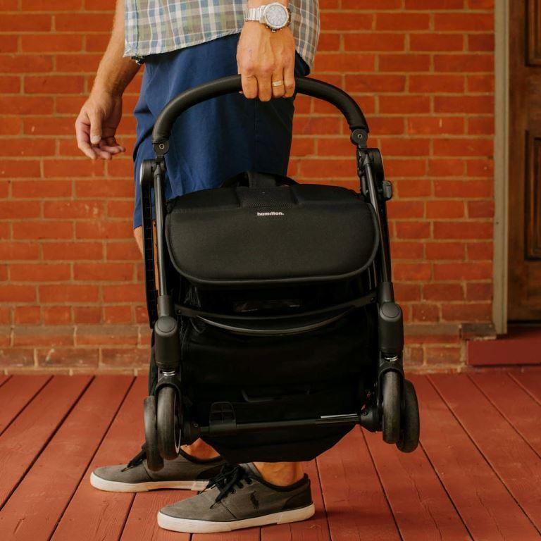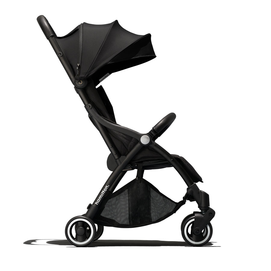 Kočárek Hamilton má funkce, které zajišťují optimalizovaný komfort, pohodlí a bezpečnost. Mezi tyto vlastnosti patří sklopné opěradlo zad, kožené rukojeti a madlo před dítětem, systém 5-bodového bezpečnostního postroje, nastavitelná opěrka nohou, prostorný úložný koš.