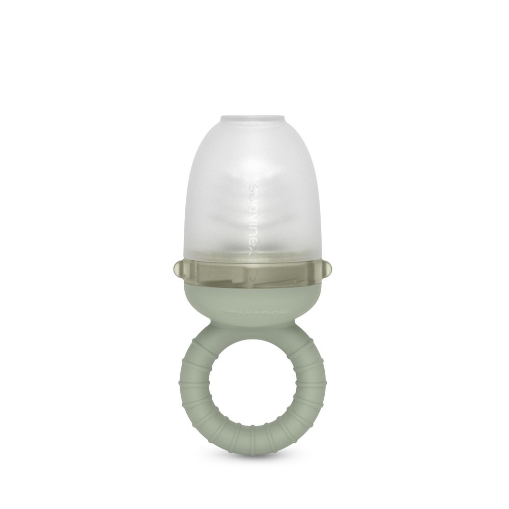Do antidusícího krmítka lze vložit kousky ovoce a zeleniny nebo i přesnídku. Krmítko je možné vychladit v lednici či mrazáku, aby dítěti nabídlo přirozený a osvěžující zážitek. Zásobník je vyroben ze silikonu lékařské kvality a snadno se myje v myčce nádobí.