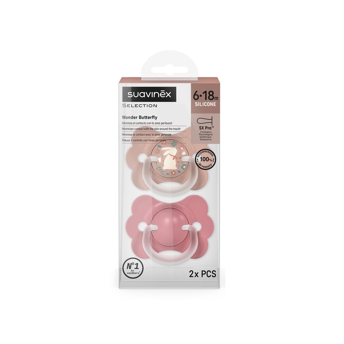 Dotaz k produktu Suavinex Dudlík SX PRO fyziologický 2 ks BUTTERFLY WONDERLAND NEW 6/18m růžový králík + růžový