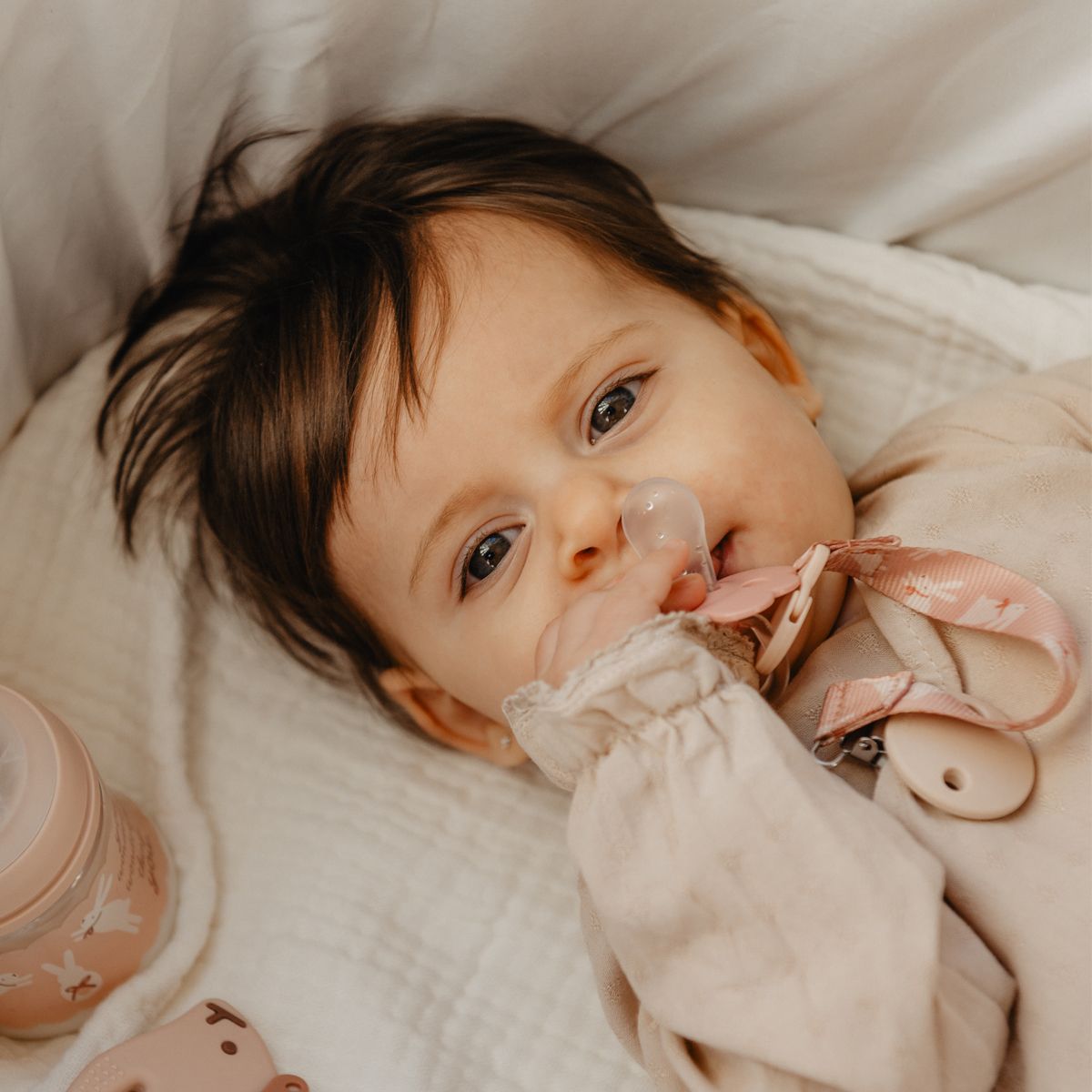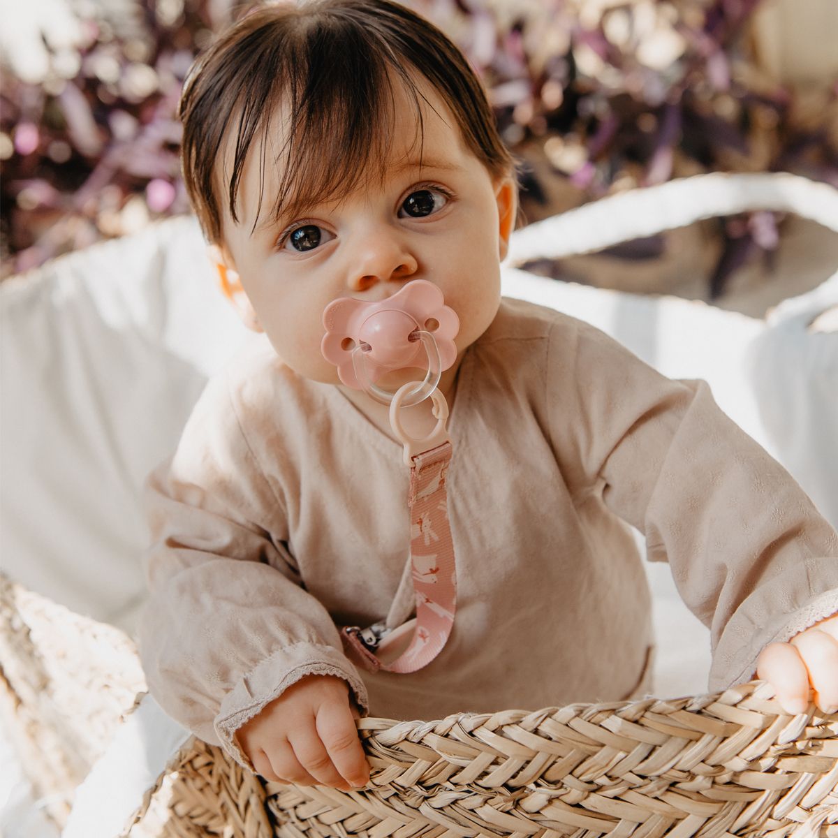 Klip, umožňuje upevnit dudlík na oblečení dítěte a předchází jeho případnému upadnutí na nečistou zem anebo jeho ztrátě.