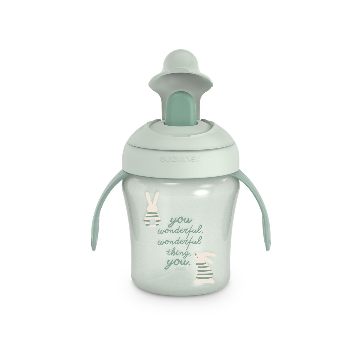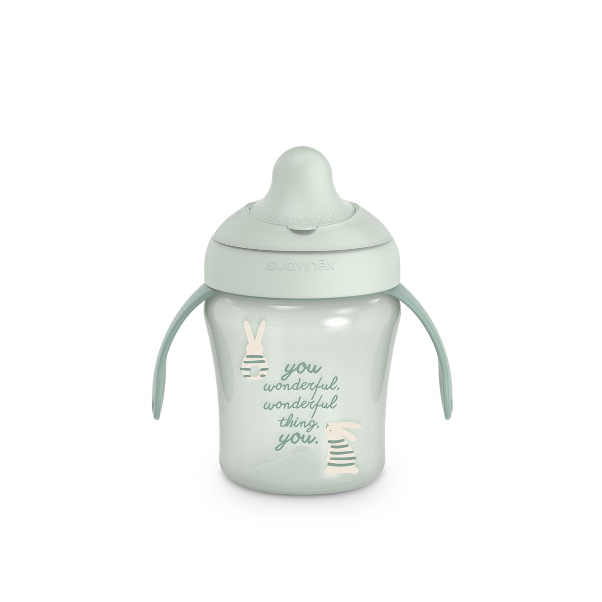 Hrníček s oušky a nerozlitnou savičkou má ergonomický tvar a ouška pro dobrý úchop. Ouška jsou odnímatelná pro přirozený přechod na běžný hrníček či sklenici. Nerozlitná savička zabraňuje odkapávání tekutiny a skvrnám. Je chráněna výklopným hygienickým víčkem. Tvrdost přizpůsobena proti prokousnutí, zároveň příjemná a bezpečná pro drobná dětská ústa.