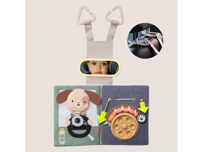 Knížka s aktivitami do auta Taf Toys Busy Book promění každou cestu v zábavné hraní plné překvapení a různorodých aktivit. Pult se jednoduše upevní na opěrku hlavy, takže je hračka pro dítě v autosedačce vždy na dosah – ať už sedí proti směru nebo po směru jízdy. V knížce s krásnými motivy dopravních prostředků a zvířátek najdete pohyblivá autíčka, pop-it bublinky, okýnka s překvapením a mnoho dalších aktivit, které malé cestovatele zabaví a rodičům poskytnou klid na řízení.