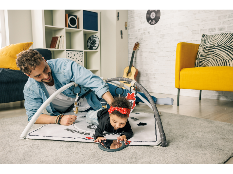 Hrací deka s hrazdou Tiny Love Gymini Tiny Rockers v unikátním rockerském provedení, které upoutá pozornost dítěte již od narození, nabízí různorodé aktivity k zabavení a stimulaci smyslů dítěte.