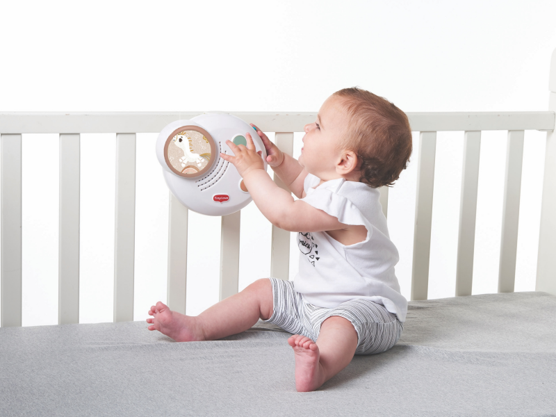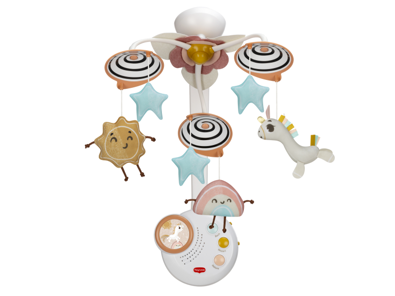 Kolotoč byl navržen s odborníky na vývoj dětí a podporuje rozvoj smyslů i emocí. Kontrastní černobílé spirály poskytují důležitou vizuální stimulaci pro rozvíjející se zrak, zatímco roztomilé plyšové postavičky povzbuzují dítě ke zvukovému projevu a emocím. Příjemná klasická hudba a tlumené noční světlo pomáhají klidnému usínání miminka.