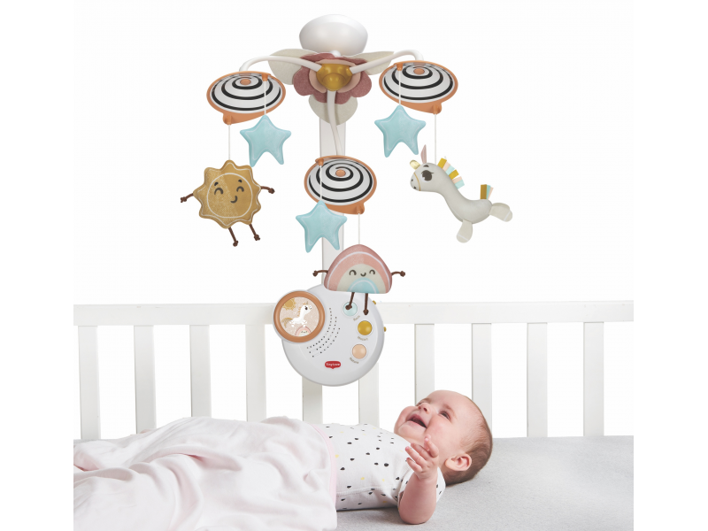 Okouzlující hudební kolotoč Tiny Love Unicorn Wonderlands s pohádkovým motivem jednorožce nabídne vašemu dítěti uklidňující melodie, jemné světlo a rozvojové podněty již od narození. Díky možnosti používat hudební box samostatně bez kolotoče hračku využijete až do 2 let věku dítěte.
