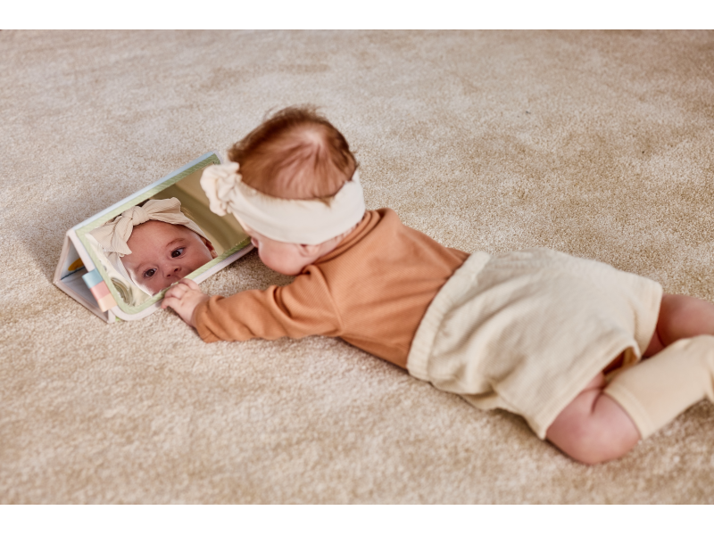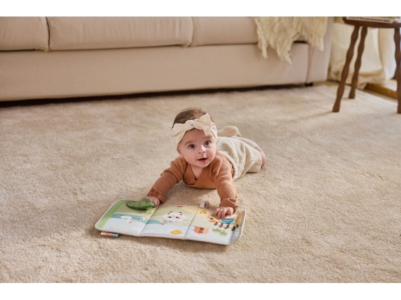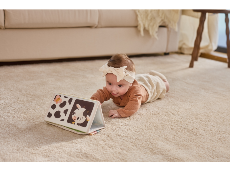 Dětská knížka pro hru na bříšku Tiny Love je měkká, skládací hračka, která nabízí 4 varianty použití při hraní miminka na bříšku. Vysoce kontrastní obrázky, bezpečné zrcátko, kousátko a další aktivity lákají miminko ke zkoumání a pomáhají ho tak udržet déle v poloze na bříšku, která je důležitá pro posilování jeho krčních a zádových svalů. Knížku můžete i složit a připevnit na kočárek, takže zabaví vaše dítě i na cestách.