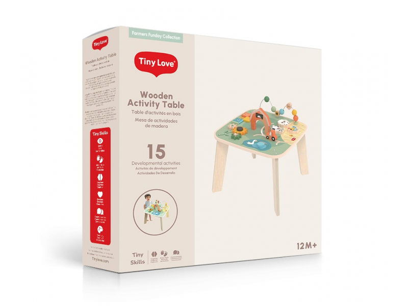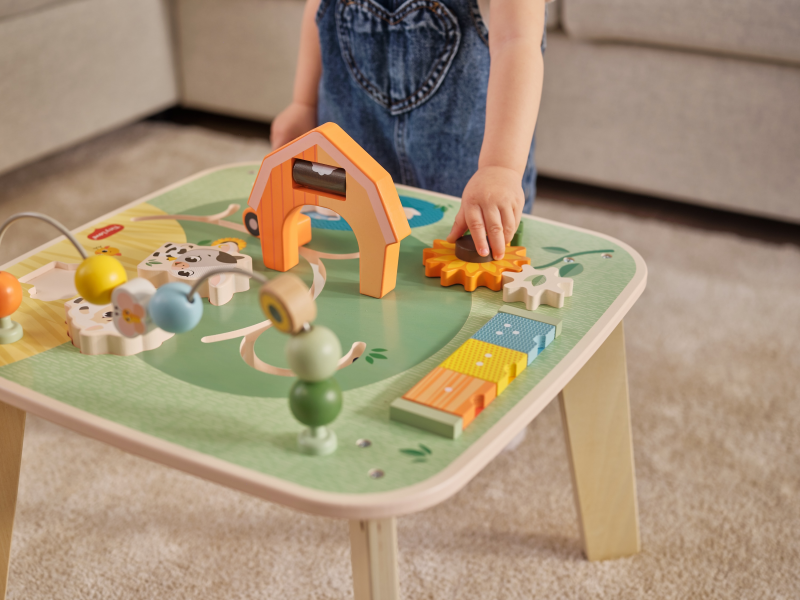 Dřevěný stolek s aktivitami Tiny Love je skvělá hračka pro malé objevitele, která nabízí spoustu možností, jak si hrát, zkoumat a učit se. Na jednom místě kombinuje různé pohyblivé prvky, vkládání a skrytá překvapení – dítě si tak přirozeně trénuje jemnou motoriku, koordinaci ruka–oko, soustředění i první logické uvažování. Stolek s krásnými motivy ze života na farmě podporuje samostatnou hru, ale zároveň je ideální i pro společné chvíle s rodiči nebo sourozenci.