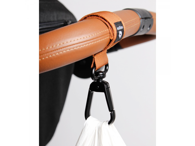 Velký a pevný háček na kočárek je praktický doplněk pro zavěšení tašek, batohů i nákupních tašek. Díky dlouhému suchému zipu drží na rukojeti kočárku stabilně a bezpečně.