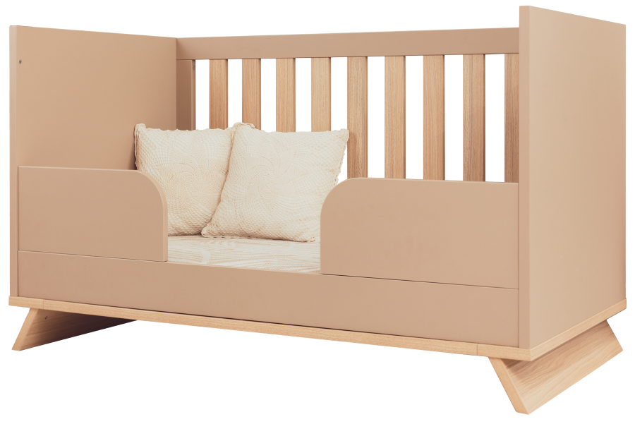 Variabilní postýlka Sienna Cappuccino 140×70 cm je praktická a vaše dítě ji může využívat dlouhodobě. Zpočátku jako dětská postýlku a s růstem dítěte ji přeměníte na postel junior. takže ji lze používat až do věku 5–6 let. Toto řešení je ideální pro ty, kteří chtějí být aktivní při zajišťování pohodlí svého dítěte. Postýlka má 3 výškově nastavitelné polohy roštu, takže čím je dítě starší, tím níže lze rošt postupně snižovat. Toto řešení poskytuje dítěti bezpečné prostředí a rodičům pohodlí. Lamely bočnic jsou unikátně řešené, širší než průměr, což dále zvyšuje bezpečnost, a designově se jedná o zcela novou řadu. Součástí standardní výbavy výrobku jsou také 2 zábrany proti pádu, které lze namontovat tak, aby vaše dítě mohlo samostatně nastupovat a vystupovat, až bude starší.