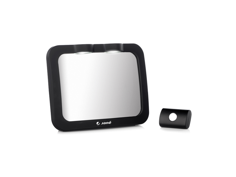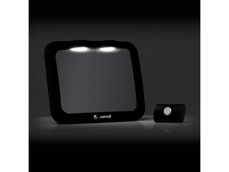 Zrcátko s dvojitým LED osvícením a dálkovým ovládáním pro monitorování dítěte sedícího v autosedačce proti směru jízdy na zadním sedadle. Otočný ohebný mechanismus umožnňuje nastavení ideálního zorného úhlu. LED osvícení se rozsvěcuje pomocí dálkového ovládání pomalu a postupně, aby vaše dítě nerušilo.